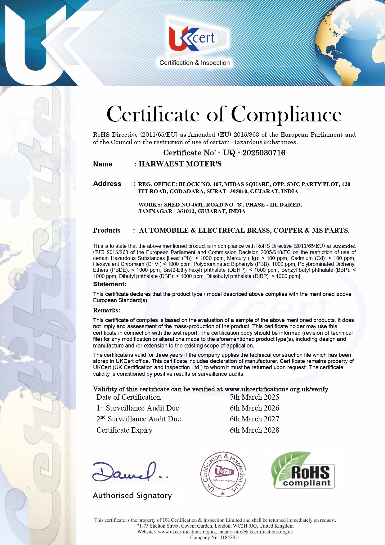 We, Harvest Motors, are engaged in manufacturing and exporting Brass Electrical Components to our clients.